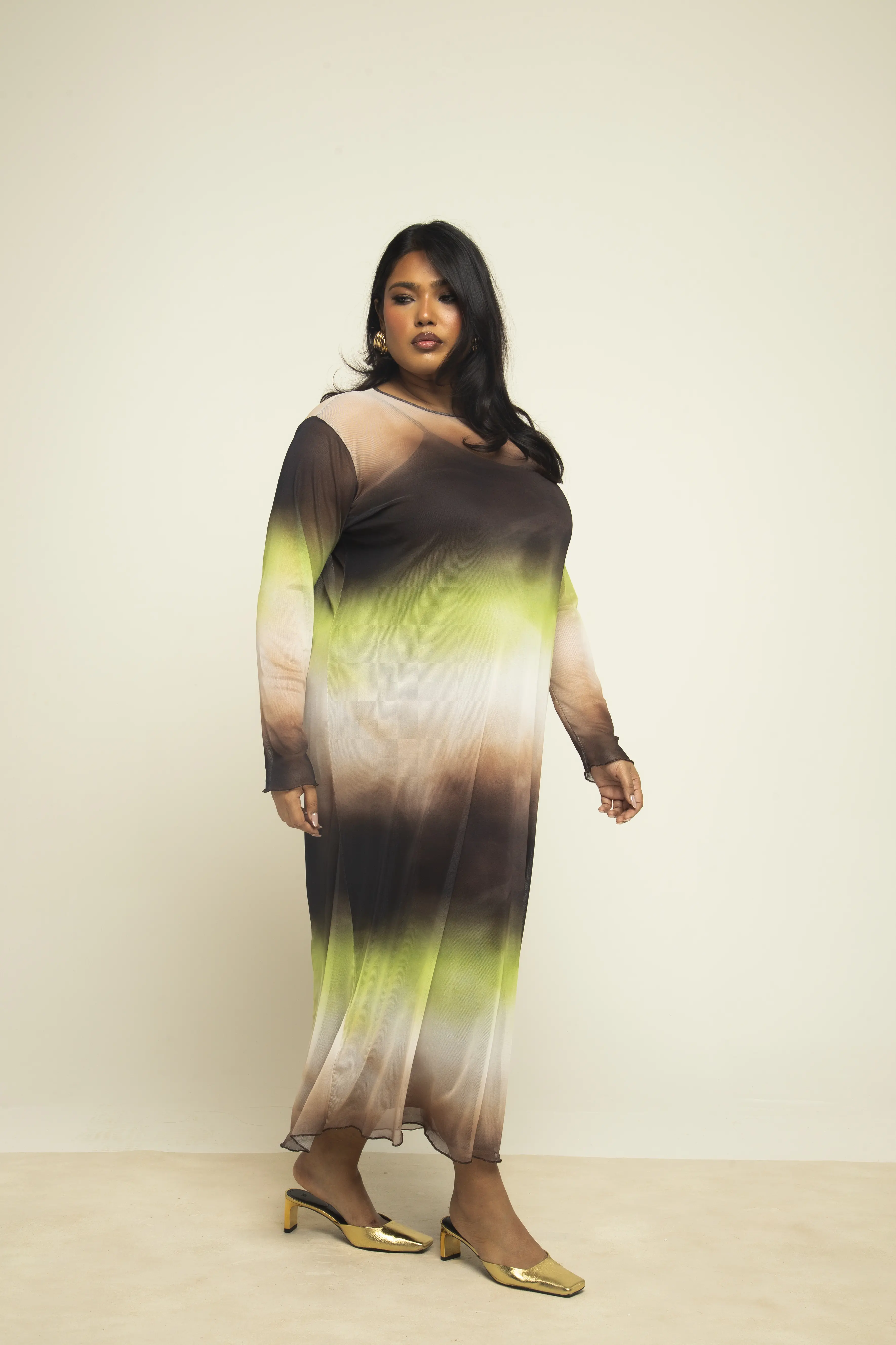 Curve Green and Chocolate Ombre Loose Fit Midi Dress