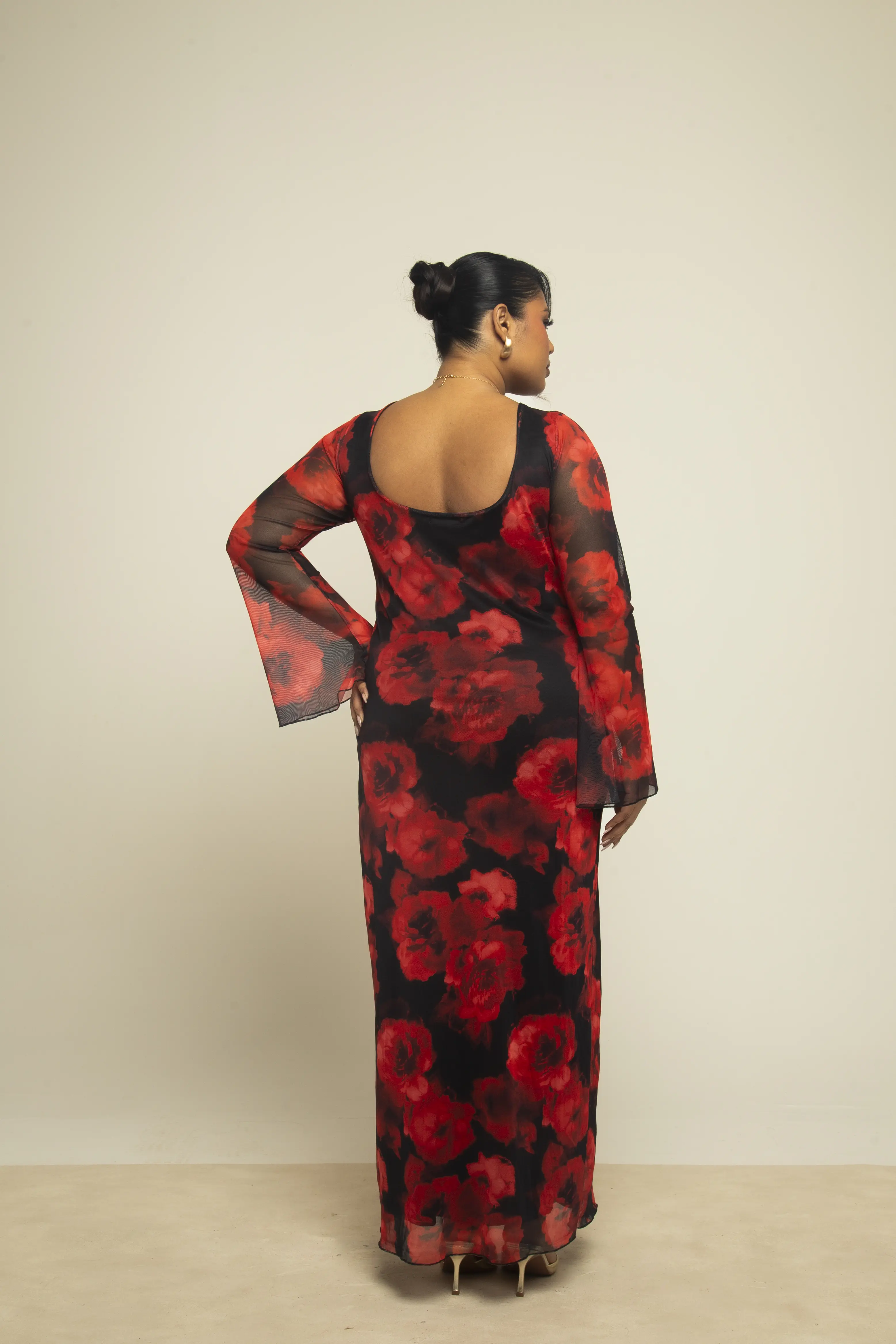 Introducing our best seller - the Curve Large floral flare sleeve mesh maxi dress! With its flowy fit and playful flared sleeves, this dress is sure to turn heads. Perfect for a day out or a special occasion, it's a must-have addition to your wardrobe.