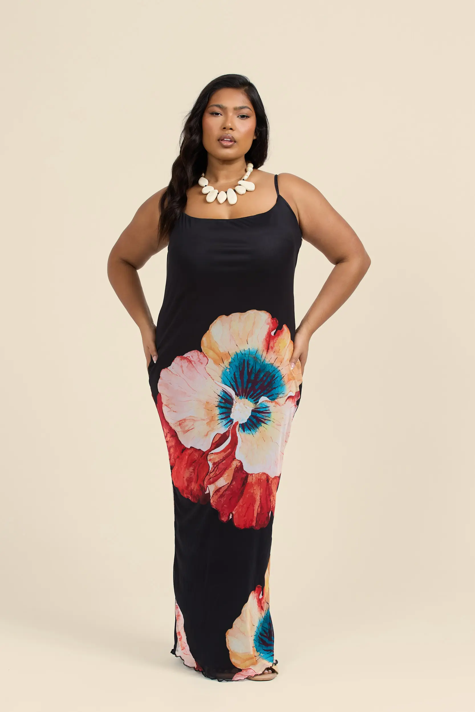 Plus Size Strappy Floral Print Mesh Maxi Dress